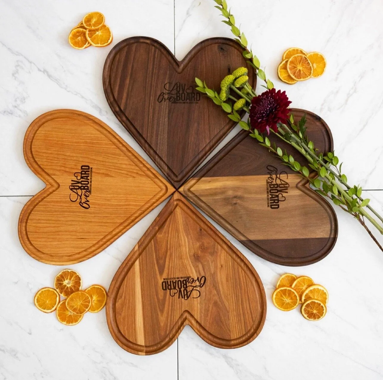 Luv OverBOARD @ Home Limited Edition #1808 Candle from $40.00 Limited Edition L.O. Candle from $40.00 Luv OverBOARD from $50.00 Sunshine Coaster & Wine Set from $50.00 Round Black Walnut Paddle from $50.00 Square Black Walnut Paddle Board from $55.00 The Heart Breaker from $50.00 The “Cut It Out” Board from $50.00